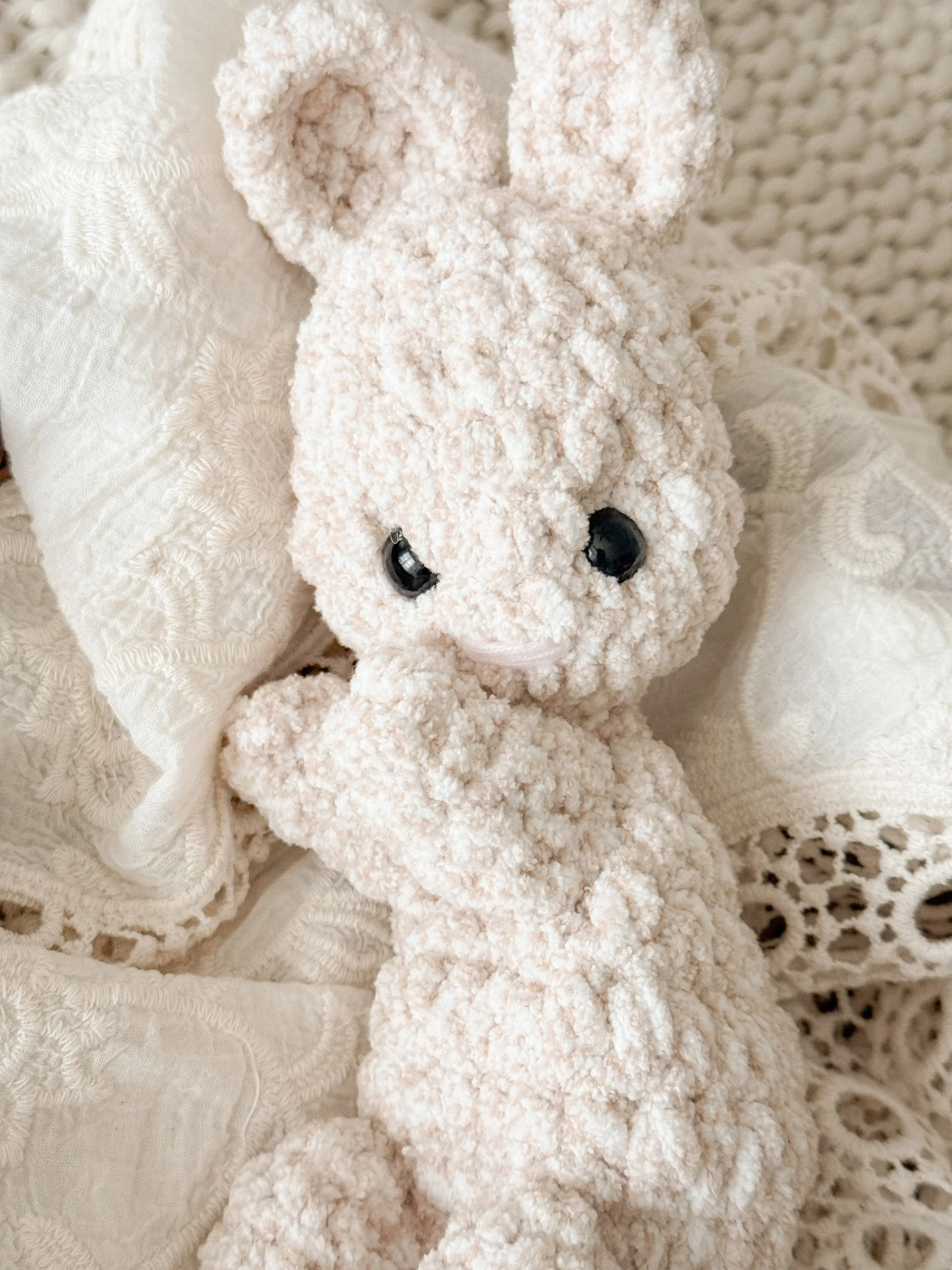 This lovey is handmade. Spot cleaning with soap and warm water is recommended, and left out to air dry.