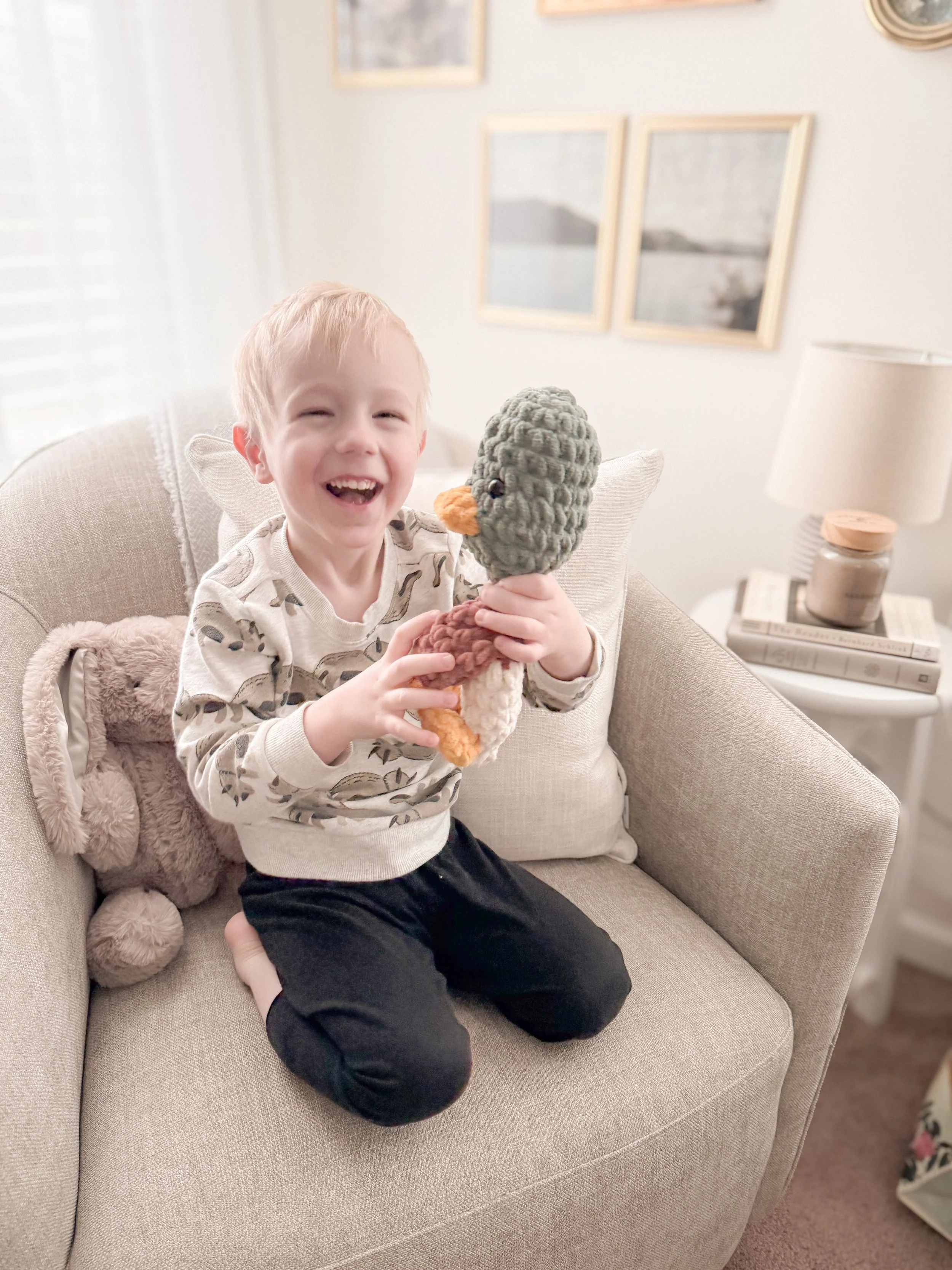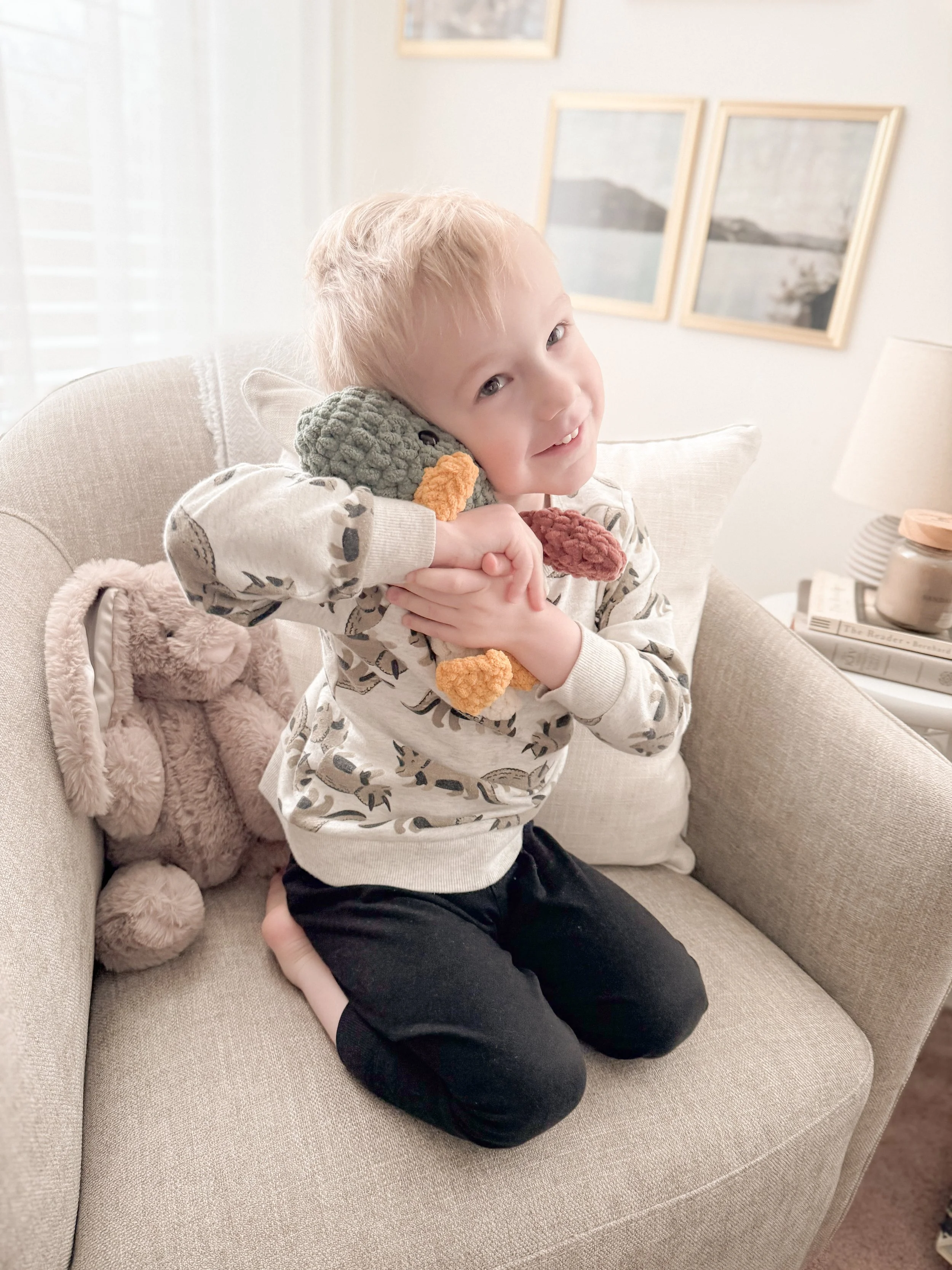 This handmade crochet pumpkin lovey is sure to make you smile. Crafted with soft blanket yarn, these loveys are only stuffed in the head, arms and legs to create a precious "floppy" lovey feel that your little one will love. Snuggle them and they snuggle you back!